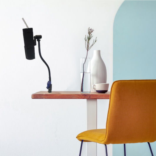 Le support à téléphone sur tige permet de positionner un téléphone de façon stable et accessible. Il facilite la communication, le divertissement ou le contrôle d’appareils connectés à l’aide de commandes vocales ou d’accessoires adaptés. Grâce à sa base Quick Connect, il s’installe et se retire rapidement, sans outils — un atout particulièrement pratique lors des transferts au fauteuil.